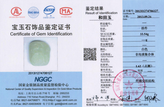 CMA标志 由国家或省组成的计量认证评审机构,评审通过的计量认证单位颁发的珠宝鉴定证书 只有标有“CMA”标志的鉴定证书才是国家认可以及 法律保护的鉴定证书。
