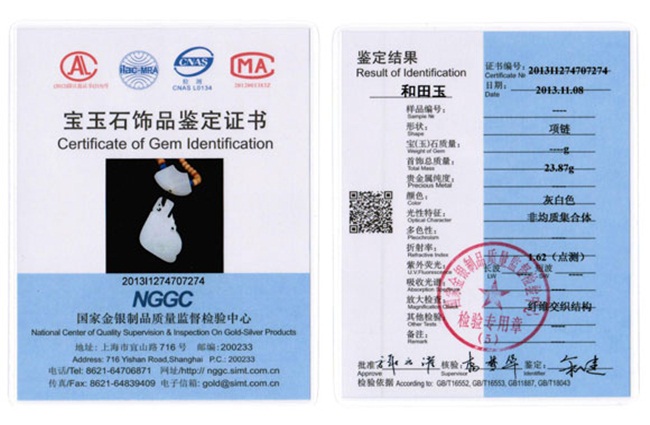 CMA标志 由国家或省组成的计量认证评审机构,评审通过的计量认证单位颁发的珠宝鉴定证书 只有标有“CMA”标志的鉴定证书才是国家认可以及 法律保护的鉴定证书。