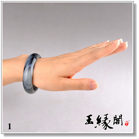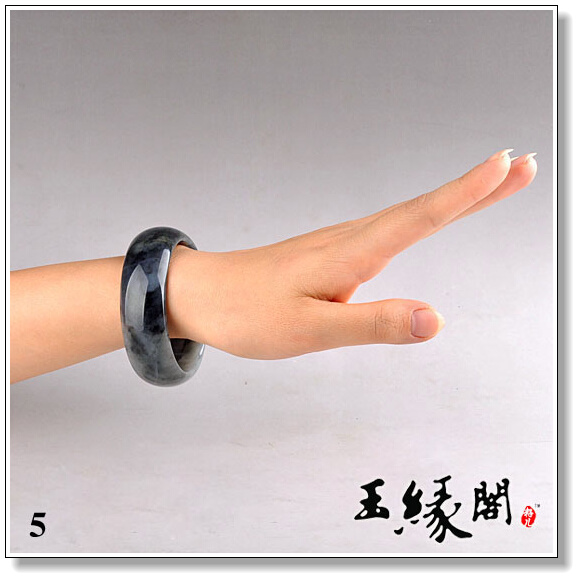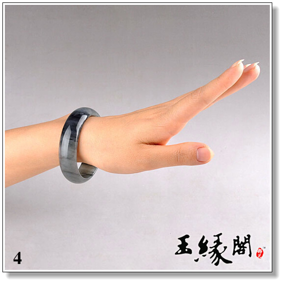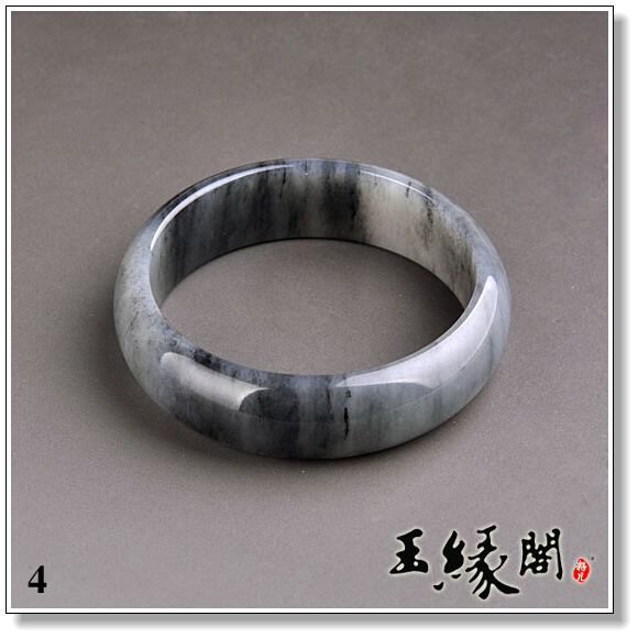 4号:重50.748克,规格:55*68*16.5【内径*外径*镯面宽,单位毫米】色墨,浓淡相间相融,内含墨点,呈层带状不均匀分布,油润光洁,手感爽滑,无瑕疵。鉴定卡号:AA43865(已售)